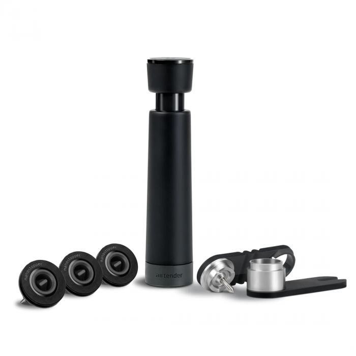 Houd voedsel en dranken langer vers en perfect op smaak. Maak van willekeurige conservenpotten in een handomdraai een vacuüm bewaarcontainer voor vershouden, marineren en infuseren. (1x Airtender vacuümpomp, 1x Lid Punch & 3x Nanostopper).